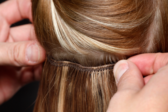 Weave Extensions involve sewing hair extensions into small, tight braids of your natural hair. This technique provides a secure and long-lasting solution, ideal for those looking for extra thickness and volume. Our expert stylists ensure that the weave is comfortable and blends perfectly with your hair for a flawless, natural finish.